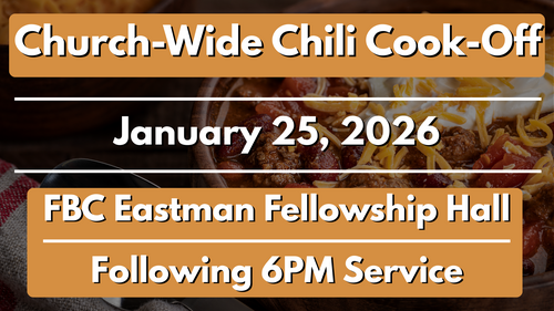 The Chili Cook-off and Fellowship will be January 25, 2026!